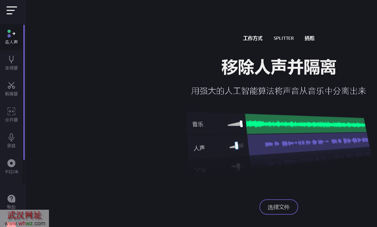 vocalremover是一個完全免費的AI人聲消除和隔離的在線音頻剪輯工具,網(wǎng)站功能包括:人聲消除和隔離、改變音調(diào)、改變節(jié)奏、修剪歌曲、連接歌曲、錄音機、卡拉OK記錄、音頻轉(zhuǎn)換器等功能,其中人聲消除隔離是該工具的核心,用戶只需上傳文件,工具就會借助強大的AI算法;將歌曲中的聲音與音樂分離開來,非常好用!